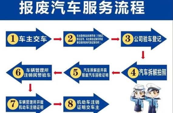 车管所定点报废单位,回收拆解报废汽车,并为车主出具《报废汽车回收证明》,代办理报废汽车注销手续,拆解后的“五大总成”和废铁按规定销售给有资质的流通企业,可利用的报废汽车回用件在销售时标明“报废汽车回用件”